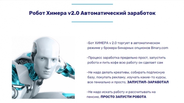 -Процесс заработка предельно прост, запустить робота и пить кофе всю работу он сделает сам