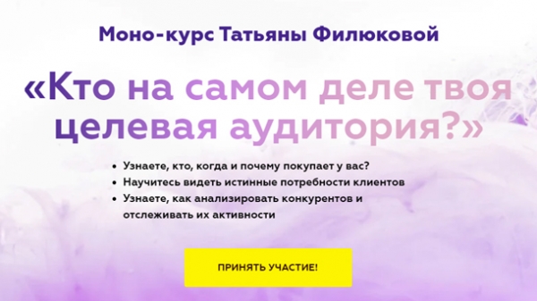 На моно-курсе вы: Поймёте, как правильно проводить анализ конкурентов Научитесь видеть истинные боли и потребности своей целевой аудитории Поймете, почему огромные списки с подробным описанием аватаров клиентов бессмысленны Узнаете, что по-настоящему важно знать о целевой аудитории, а что можно опустить Узнаете, какой путь проходит каждый новый лид и как он превращается в клиента После моно-курса вы: Узнаете свою истинную целевую аудиторию Проведёте сегментацию и составите правильные аватары Поймете, как закрывать боли и потребности целевой аудитории